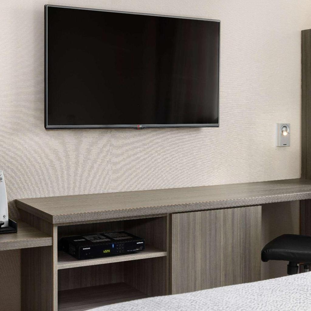 Nossos quartos são projetados para proporcionar o máximo de conforto. Cada unidade conta com uma TV de tela plana de 32 polegadas com HBO, perfeita para relaxar após um dia explorando a cidade. Para sua conveniência, todos os quartos estão equipados com um frigorífico e uma mesa de trabalho, ideal para quem precisa de um espaço para trabalhar. Além disso, oferecemos Wi-Fi gratuito em todas as áreas do hotel, permitindo que você permaneça conectado durante toda a sua estadia.