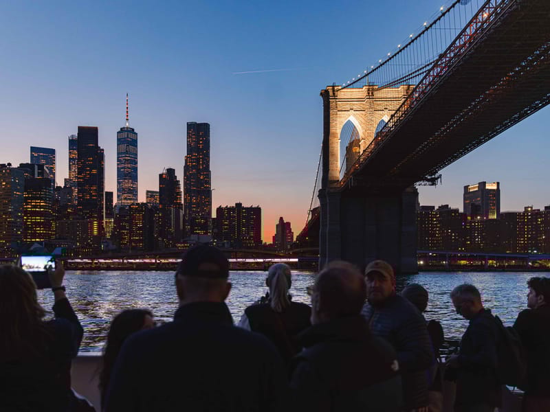 O que você vai ver: Durante o cruzeiro, você terá a oportunidade de admirar as icônicas estátuas da Liberdade, navegar sob as majestosas pontes de Brooklyn, Manhattan e Williamsburg, e desfrutar da vista espetacular do Lower Manhattan iluminado à noite. A visão do Brooklyn Bridge ao pôr do sol é simplesmente mágica e garantida para deixar você sem palavras!