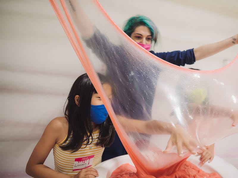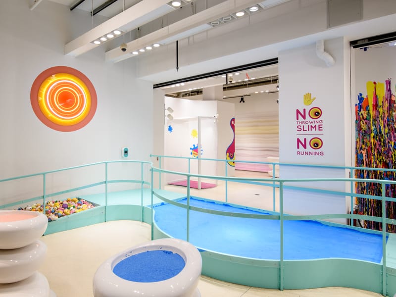 Prepare-se para se aventurar em um lago de slime, onde você poderá sentir a viscosidade e a diversão entre os dedos dos pés! O Sloomoo Institute possui mais de 30 tipos de slime com diferentes texturas, cores e cheiros. Um dos pontos altos é a DIY Bar, onde você poderá criar seu próprio slime de 8 oz para levar para casa, escolhendo entre mais de 40 cores, 60 fragrâncias e 150 enfeites.