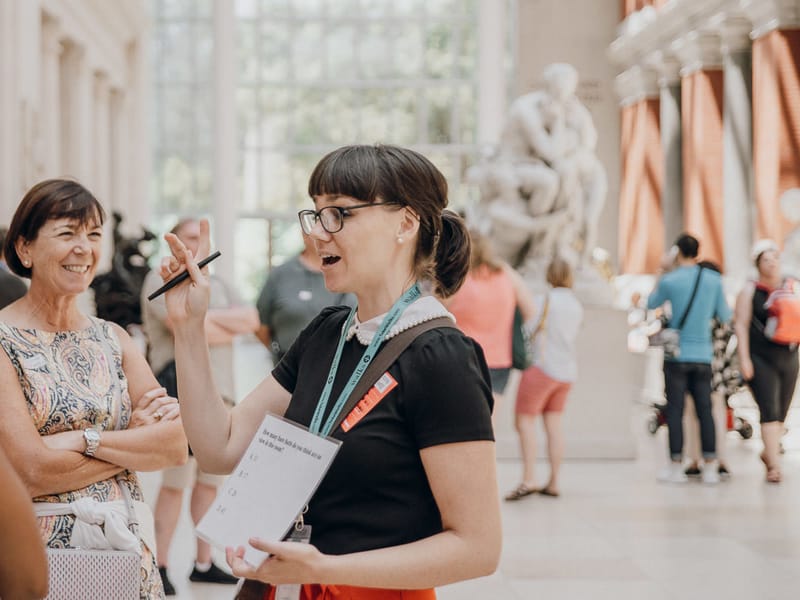 Por favor, chegue 15 minutos antes do início do seu tour. Seu guia estará segurando um cartaz verde da Walks. Este tour se encontra no 1000 5th Ave (Museu Metropolitano de Arte). Encontre-se no saguão principal à direita da mesa de informações em frente ao grande Faraó sentado.