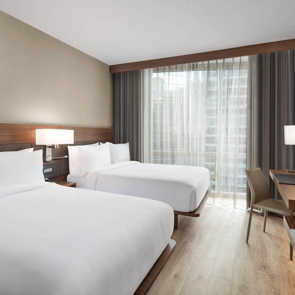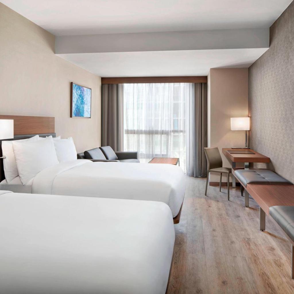 Ao escolher o AC Hotel by Marriott New York Downtown, você se hospeda em um ambiente contemporâneo, onde cada detalhe foi pensado para garantir uma experiência única. Nossos quartos são equipados com ar-condicionado, Wi-Fi gratuito e uma decoração elegante que promove conforto e tranquilidade. Após um dia explorando a cidade, relaxe em uma de nossas camas luxuosas ou desfrute de uma vista deslumbrante da cidade que nunca dorme.