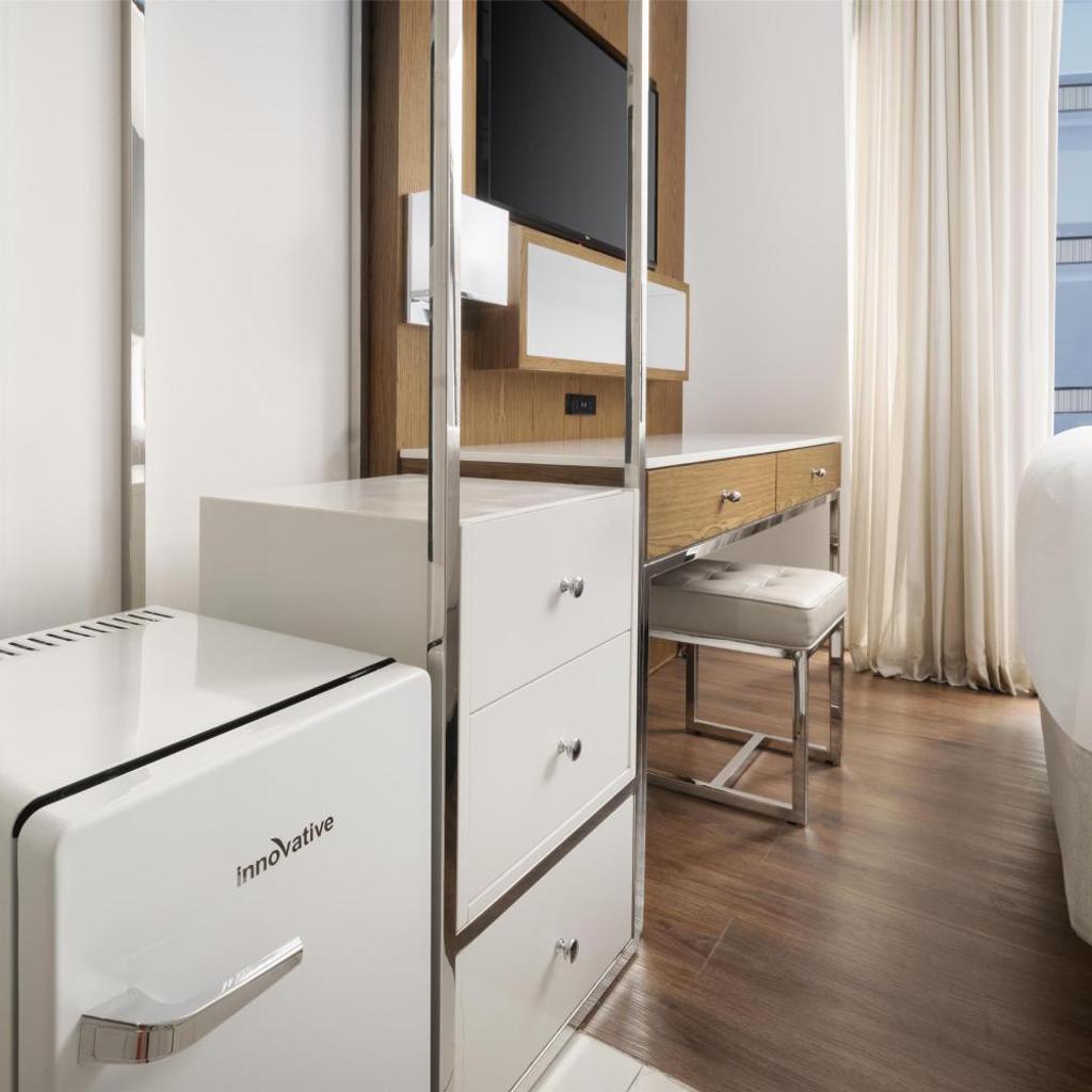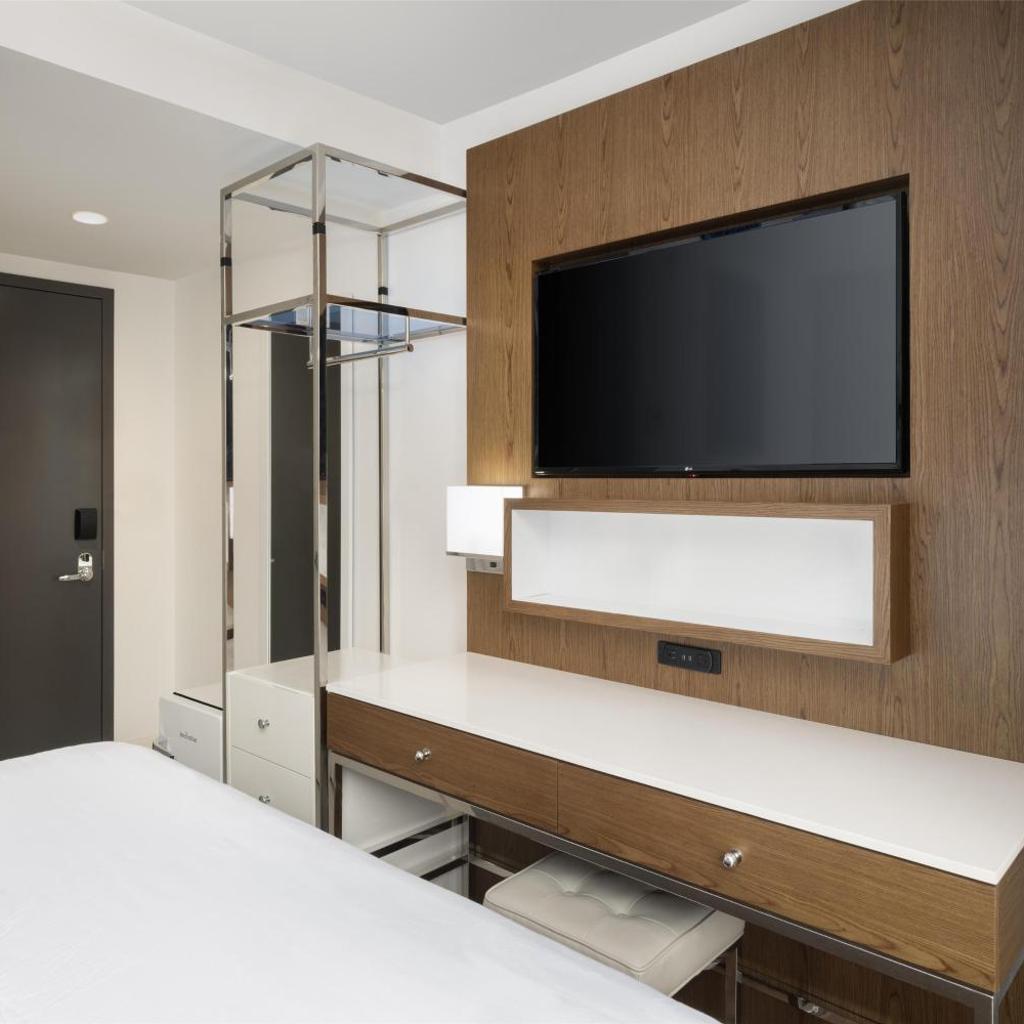 Os quartos são um verdadeiro refúgio após um dia agitado explorando a cidade. Cada acomodação é equipada com geladeira, perfeita para armazenar lanches e bebidas, permitindo que você aproveite ao máximo sua experiência em Nova York. Com um design acolhedor e todos os confortos modernos, você poderá relaxar e recarregar suas energias para as aventuras do dia seguinte.