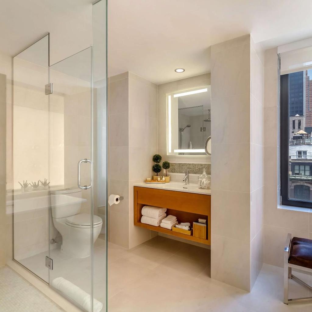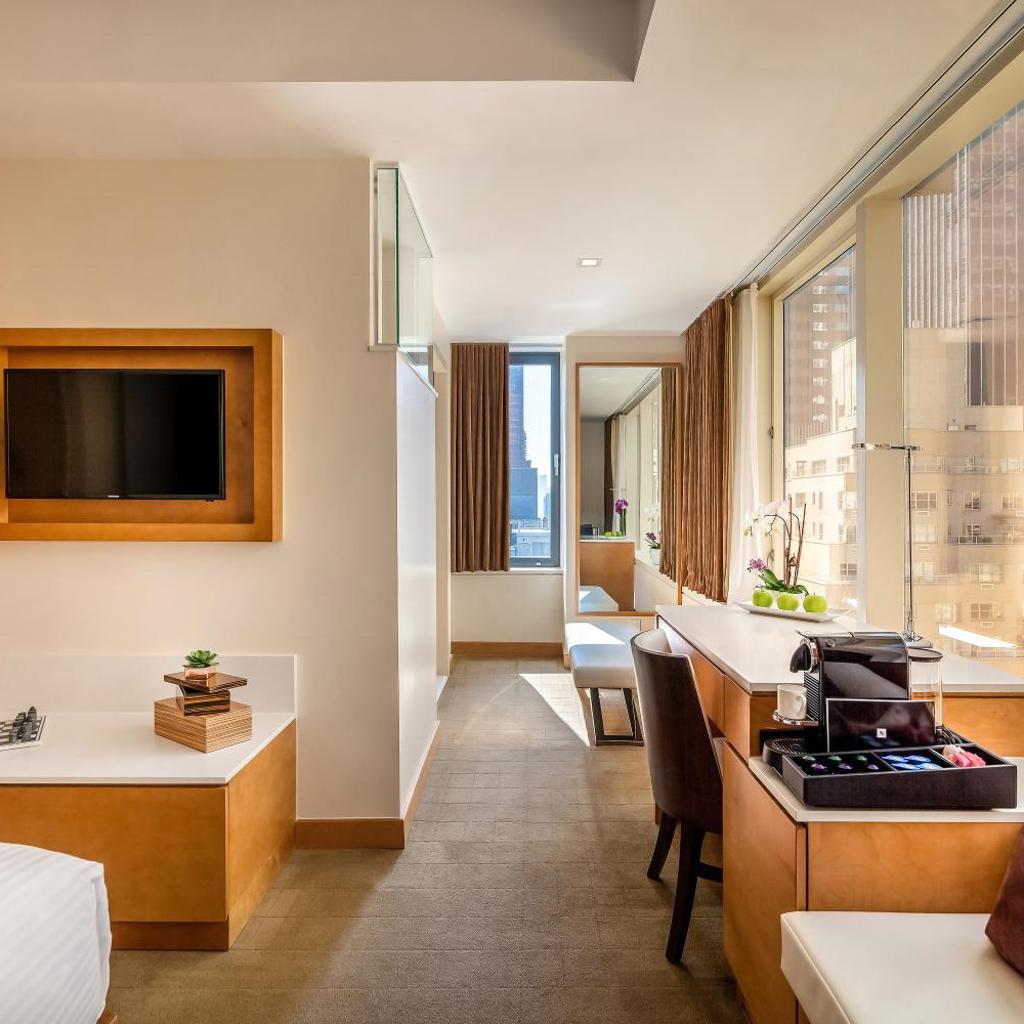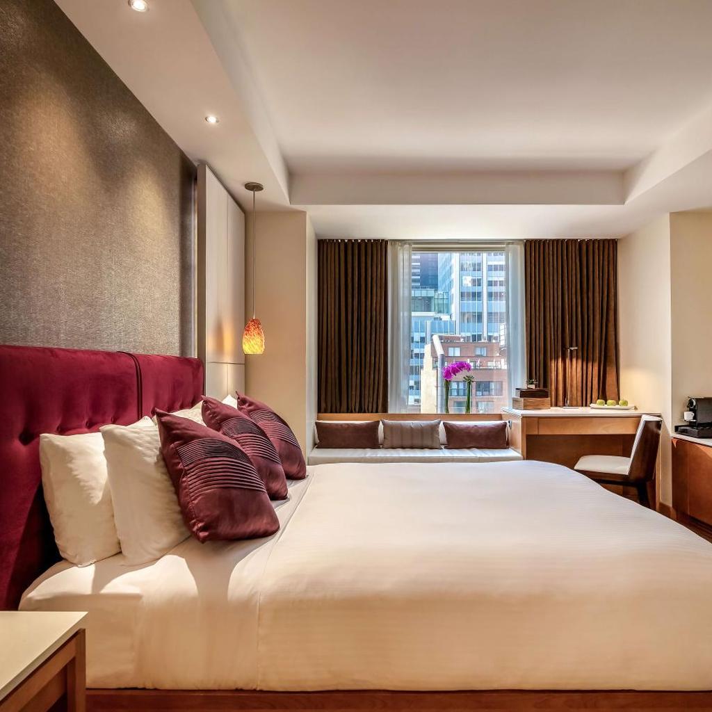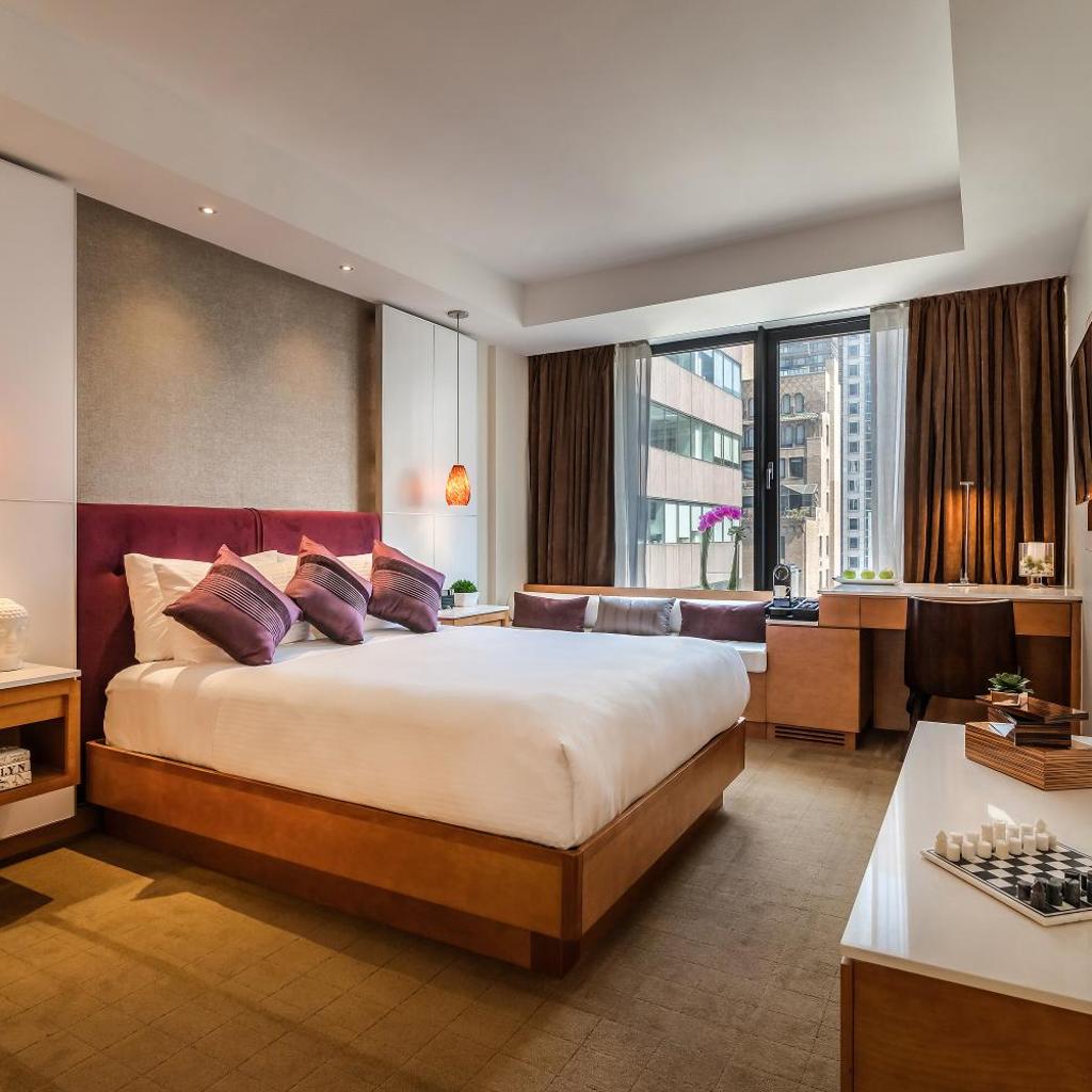 Ao entrar no Concorde Hotel New York, você será recebido por um ambiente acolhedor e sofisticado, projetado para proporcionar uma estadia excepcional. Cada um de nossos quartos é um santuário de tranquilidade, equipado com mesa de trabalho, TV de tela plana e comodidades modernas que atendem às suas necessidades. Os banheiros privativos são um convite ao relaxamento, com banheira de imersão e chuveiro com efeito de chuva, além de produtos de banho de cortesia e roupões macios que garantem uma experiência de spa no conforto do seu quarto.