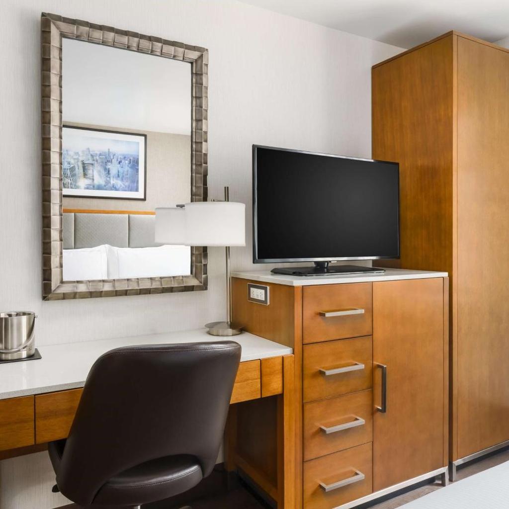 O DoubleTree by Hilton Chelsea se destaca não apenas pela sua localização estratégica, mas também pelas comodidades que oferece. Todos os quartos são projetados para proporcionar o máximo conforto, equipados com TVs de tela plana a cabo, mesas de trabalho funcionais e banheiros privativos com produtos de banho de cortesia que garantem uma estadia relaxante.