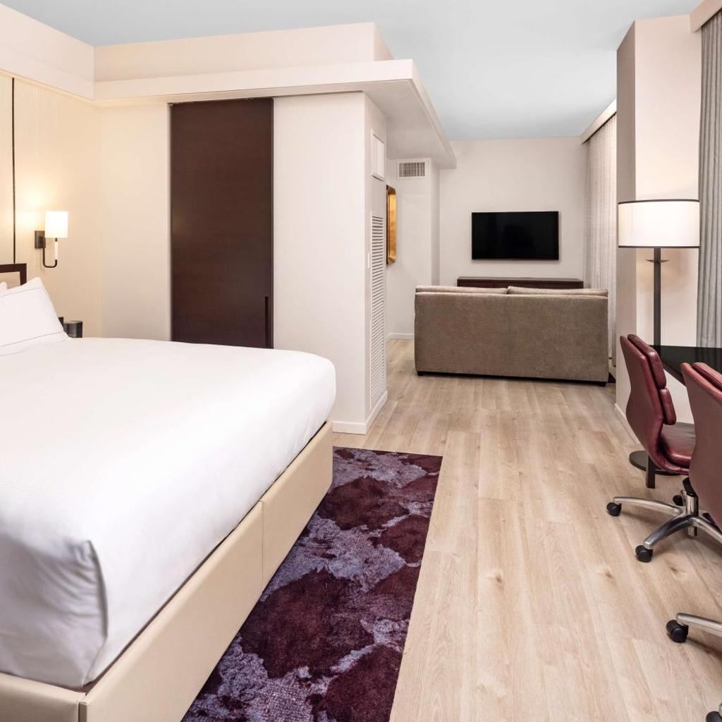 No Hilton Club, cada detalhe é pensado para proporcionar conforto e praticidade. Os quartos elegantes e bem equipados incluem ar-condicionado, uma área de estar aconchegante, TV de tela plana com canais a cabo e um cofre para sua segurança. Além disso, você encontrará uma geladeira, ideal para armazenar suas bebidas e lanches favoritos enquanto explora a cidade.