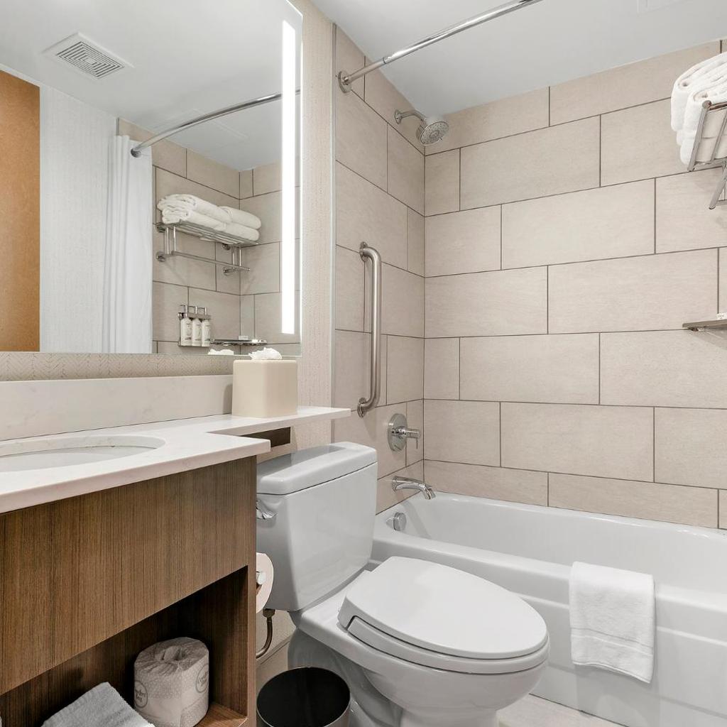 Ao entrar no Holiday Inn Manhattan, você será recebido por um ambiente que reflete a energia e a diversidade de Nova York. Os quartos são projetados com um toque moderno, equipados com TV de tela plana de 50″, conexão para MP3 e Wi-Fi gratuito, garantindo que você esteja sempre conectado e entretido durante a sua estadia. Cada unidade apresenta uma mesa de trabalho espaçosa e um armário, oferecendo um espaço funcional, ideal tanto para viajantes a negócios quanto para turistas. Além disso, você encontrará produtos de banho gratuitos e secadores de cabelo, tudo para proporcionar uma experiência de hospedagem sem preocupações.