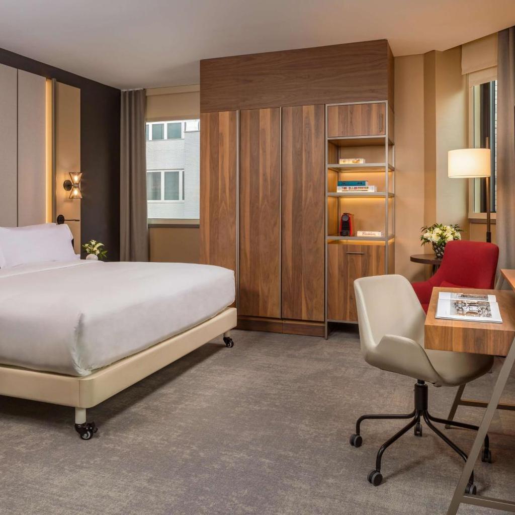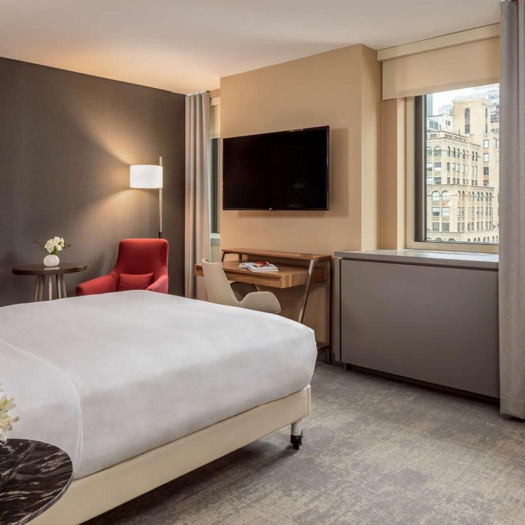 Os quartos do NH Collection New York Madison Avenue são projetados para oferecer conforto e modernidade. Cada espaço conta com ar-condicionado, Wi-Fi gratuito e banheiro privativo, garantindo que você tenha todas as comodidades necessárias para uma estadia tranquila. Os quartos são equipados com guarda-roupa e cofre, e alguns ainda oferecem vistas panorâmicas da cidade, permitindo que você desfrute das luzes cintilantes de Nova York diretamente da sua janela.