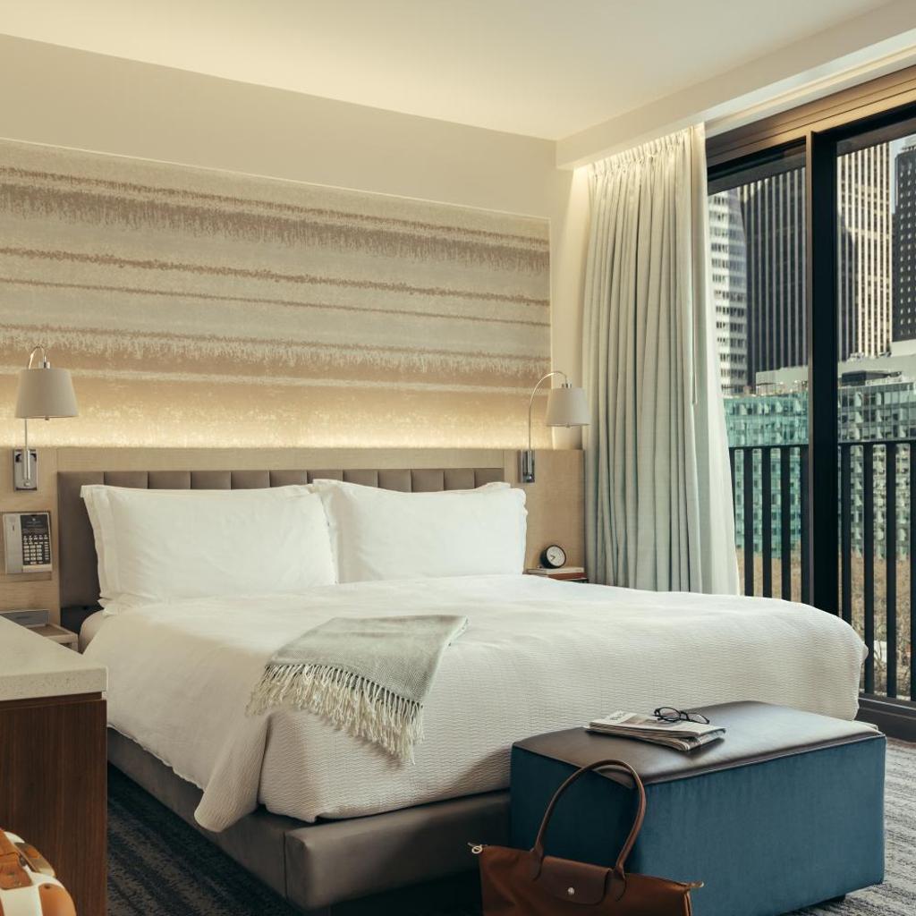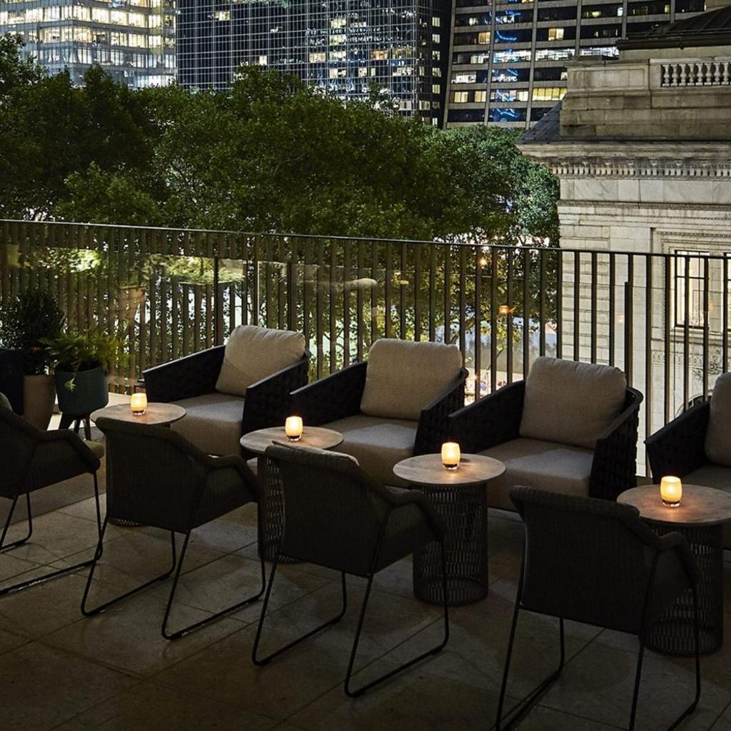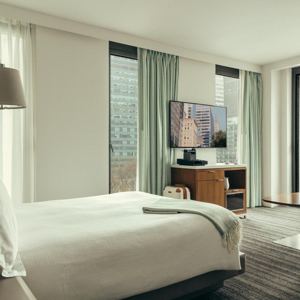 Algumas de nossas acomodações oferecem janelas panorâmicas que proporcionam vistas deslumbrantes do Bryant Park e da Biblioteca Pública de Nova York, permitindo que você aprecie a beleza da cidade ao acordar.