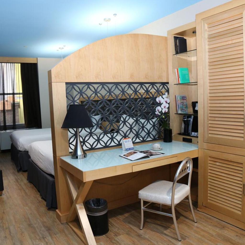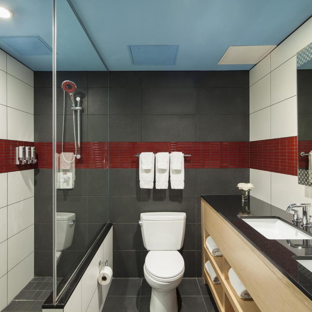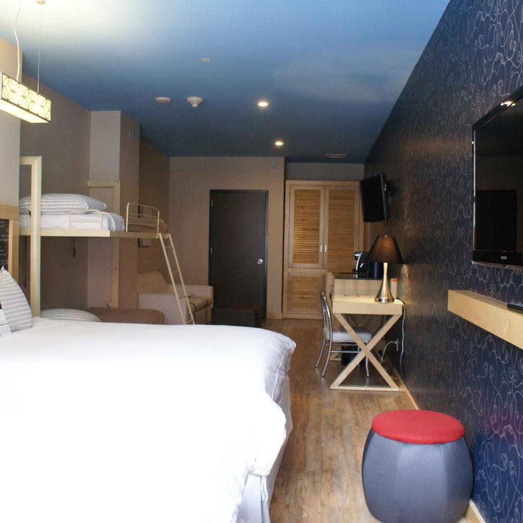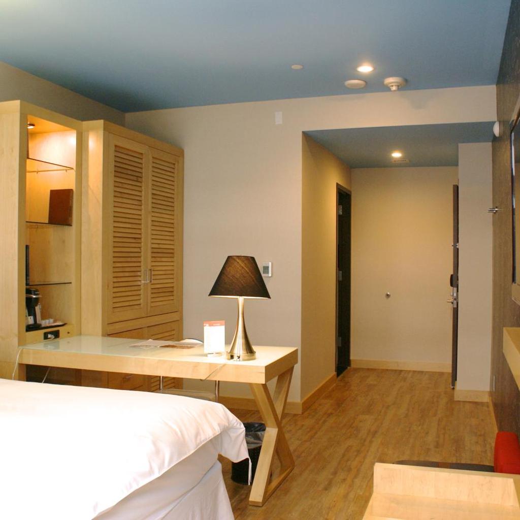 Cada um dos quartos bem iluminados foi projetado para proporcionar conforto e estilo. Com piso de madeira elegante, TV de tela plana e base para iPod, você encontrará tudo que precisa para relaxar após um dia emocionante na cidade. As comodidades incluem também uma cafeteira, perfeita para começar a manhã com um café fresquinho antes de sair para as aventuras do dia.